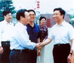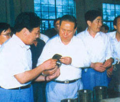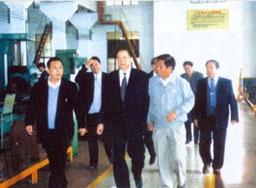 | 梁省長(前左一)在董事長陪同下視察企業(yè) | 原副省長俞興德到生產(chǎn)車間視察工作 |