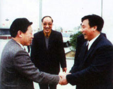 | 社會(huì)保障部鄭部長(右一)在北京親切接見董事長 | 廣電部孫部長(左一)來公司視察工作 |